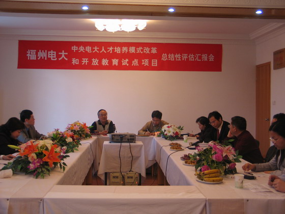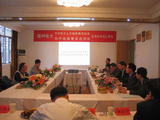 专家组听取了孙芳仲校长关于开放教育试点项目工作情况的汇报。中共福州市委常委、教育工委书记陈大强到会致欢迎词。福州市教育局局长、福州职业技术学院党委书记赵素文主持汇报会,校领导金昌余、林福荣及省市电大部分中层干部参加了会议。