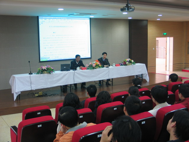 福建交通职业技术学院沈斐敏院长(左)应邀做“创建国家示范性高职院校”专题讲座
