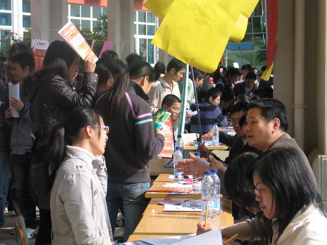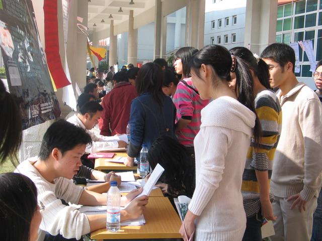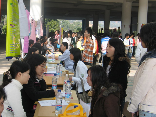 福州职业技术学院于12月28日(星期五)成功举办了2008届毕业生大型校园招聘会,近200家企业参与本次招聘会。与前三届相比,呈现出参加企业数量更多,质量更高,岗位需求更贴近专业的特点。当日到会的企业包括香格里拉大饭店、用友软件、太平洋保险、厦门金龙、福建动漫游戏人才基地等大型企业。尤其是连续三年参加学院校园招聘会的福州东方同盛文化传播有限公司、福大自动化科技有限公司、福州大饭店、省亿力电力网络信息设备有限公司、中国人寿保险有限公司等二十多家企业,由于对学院毕业生质量、工作态度、敬业精神感到满意,今年带来了更多的工作岗位。各系毕业生积极参加本次招聘会,会场气氛热烈,供求双方反映良好,多数企业对我院本次校园招聘会感到满意。