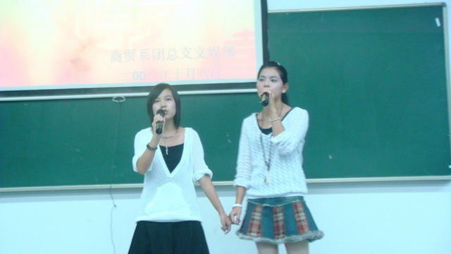 10月8日晚七时,大家欢聚一堂,参赛的同学们个个活力四射,激情澎湃。一曲《梁祝》拉开了比赛的序幕;06国际商务一班的施翔同学以一首《心如刀割》引起阵阵欢呼;闽南语歌曲《雨水我问你》、民歌《为了谁》等各有特色。参赛选手们富有激情的表演唱、极具创意的表演方式,赢得了在场观众雷鸣般的掌声,欢呼声把比赛推向一个又一个的高潮。最后,比赛在一首轻快悦耳的《LYDIA》歌声中落下帷幕。那流动的旋律,跳动的音符仍在校园上空久久环绕……