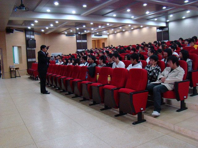 加拿大圣力嘉学院教授首先介绍了加拿大目前情况——加拿大为联合国最佳居住国、加拿大的教育体系、圣力嘉学院的总体情况、商学院专业设置、学生特点、教学特色等;随后,对同学们目前的英语学习提出了方法与建议,讲解了如何在出国前做好心理准备和文化知识储备,并详细回答了同学们迫切希望了解的出国留学深造等问题。
