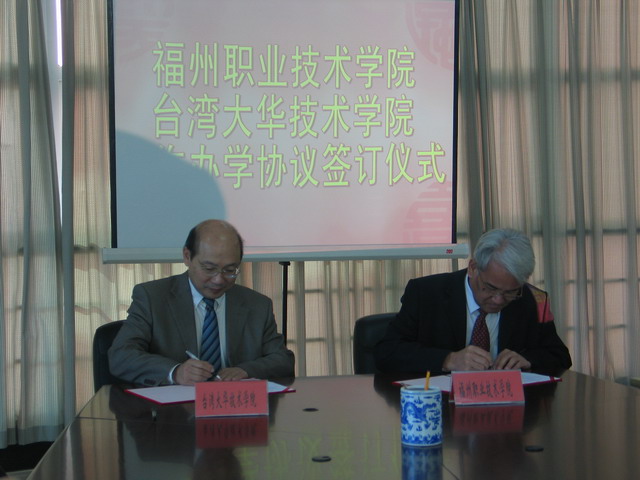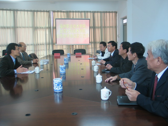 11月28日上午,福州职业技术学院与台湾大华技术学院合作办学意向书签订仪式在学院综合楼515会议室举行。台湾大华技术学院教务长刘玉山、主秘杜凤祺,福州职业技术学院院长林承超、副院长金昌余、党委副书记林福荣、党政办主任赵君尧、教务处处长林宁参加了签字仪式。