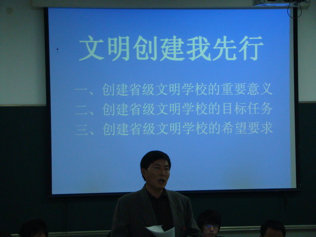 人文社科系党总支在接到学院创建“省级文明学校”的通知后,两次召集系党总支扩大会议研究部署本系的创建活动,针对创建活动时间紧、任务重的特点,坚持分工明确、责任到人,使创建活动有条不紊地进行。系党总支副书记贾同恩同志分别于12月10日、12月16日、12月17日召开学生干部、教职工和系党总支党员大会,进行层层动员发动,统一全系师生的思想,利用墙报、板报等形式来宣传文明学校创建精神,使其深入人心。师生们认为文明学校创建活动是人文社科系乃至学院工作的一项基础性建设工程。人文社科系还及时组织师生进行卫生大扫除,整理办公室、教室及宿舍、环境卫生,使创建活动既轰轰烈烈又扎扎实实。