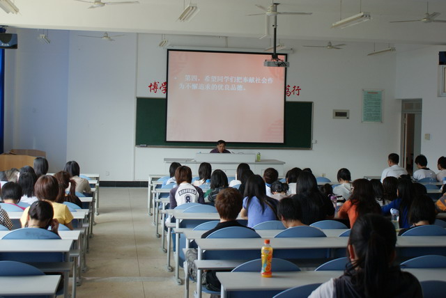 2009年5月6日下午,应用外语系分别在系会议室和综合楼411多媒体教室举行了学习胡锦涛总书记在中国农大师生代表座谈会上的讲话专场会议,参加学习会的有系教职员工、学生党员、系学生两委干部、各班班委及入党积极分子。