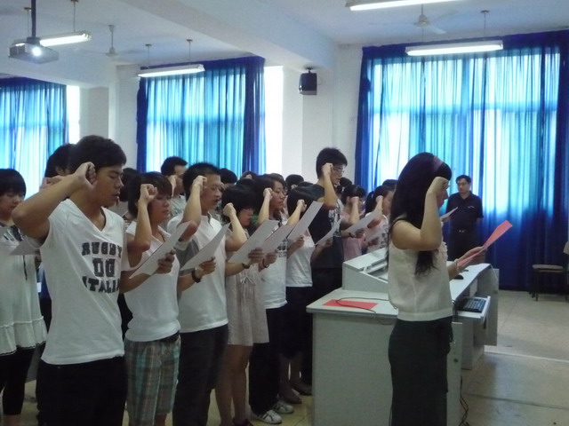 6月9日下午,公共教育系党总支在211多媒体教室举行了新党员入党宣誓大会。担任宣誓大会的监誓人是学院党委委员、副院长刘松林,领誓人为系学生党支部书记韩燕霞,主持人为系党总支副书记郑高亮。