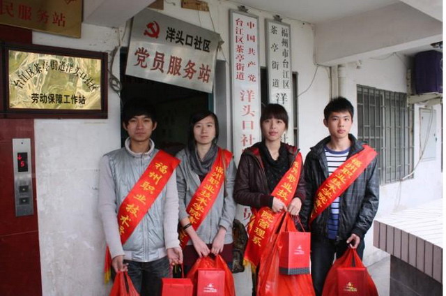 2011年1月5日,福州职业技术学院管理系两委学生干部带领管理系志愿者以“在实践中践行志愿者宣言”为主旨,对文明城市共建社区洋头口社区的孤寡、空巢老人展开了志愿帮扶活动。