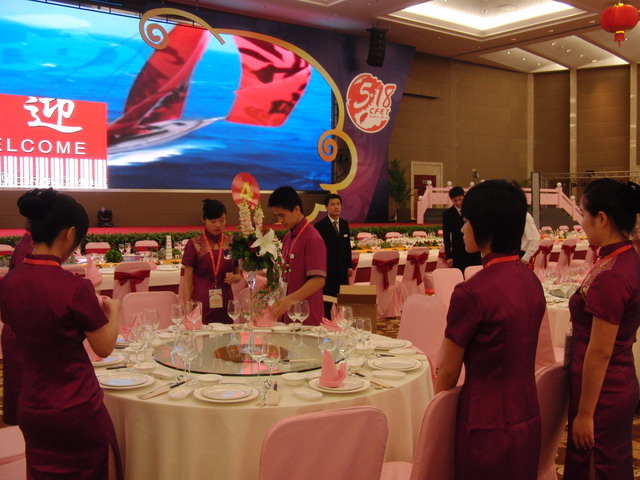 17日上午,志愿者们很早就来到了海峡国际会展中心并接受了任务分配,同时与所在小组进行了具体的分工;下午,志愿者们在现场领导的指挥下进行了上菜秀的演练并熟悉了整个晚宴的服务流程;傍晚,与会的领导和海内外嘉宾陆续来到了会展中心,志愿者们在事前的充足准备下,信心满满地开始了正式的晚宴接待服务,最终以出色的服务质量和真诚的服务态度赢得了来宾们的认可和赞许。