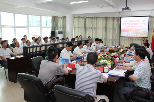 2011年5月23日,福建省第十一届文明学校第一考评组一行9人对学院创建省级文明学校工作进行实地考评。