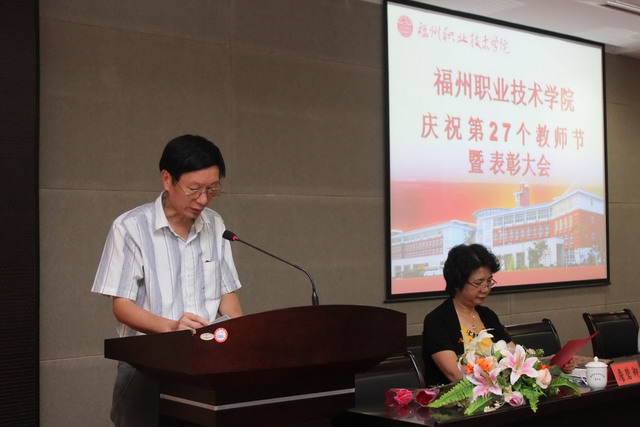 2011年9月9日下午,学院隆重举行庆祝第27个教师节暨表彰大会。俞云金书记、林承超院长、金昌余副院长、林福荣副书记、刘松林副院长、詹碧卿副院长和全院教职工共同参加了大会。会议由金昌副院长余主持,林福荣副书记宣读了学院2010-2011学年先进集体、先进个人以及第三届“三育人”先进个人的表彰决定,院领导为受表彰的先进单位和先进个人代表颁奖。