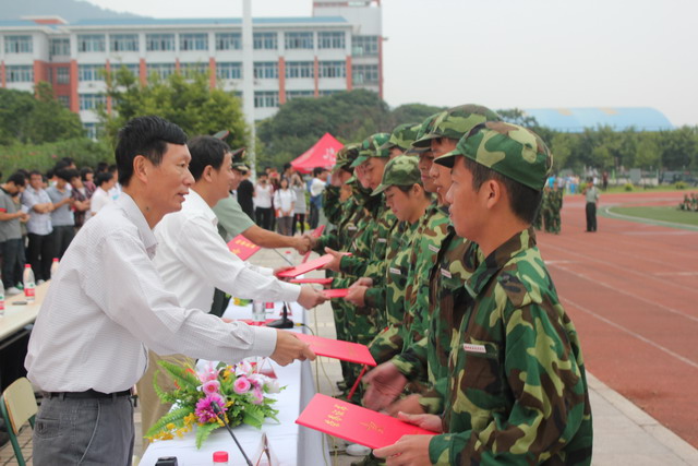 最后,院党委副书记林福荣作了总结讲话。他首先对省军区教导大队支持我院新生军训工作表示衷心的感谢!他充分肯定了2011级新生在本次军训中取得的成绩,希望同学们把在军训中形成的良好作风和习惯带到今后的学习生活中,明确使命和目标,弘扬良好风气,立足本专业,掌握真本领,把品德修身、技能立身放在头等重要的位置,把自己培养成为适应时代和社会需要的高素质技能型人才!
