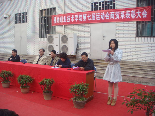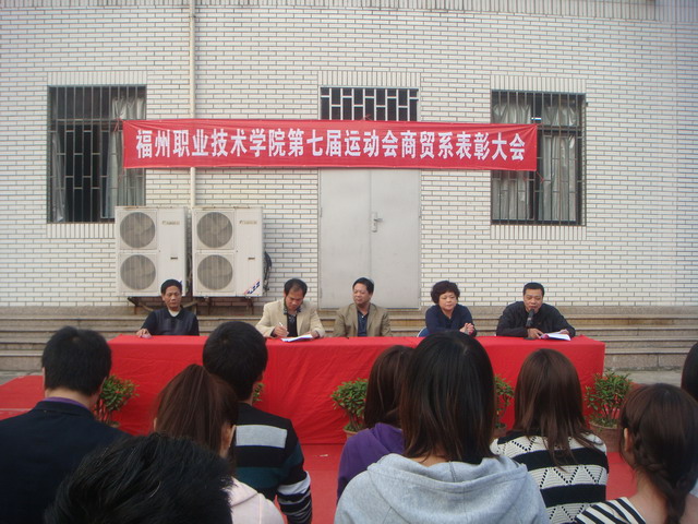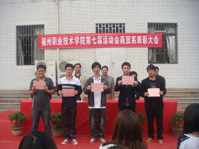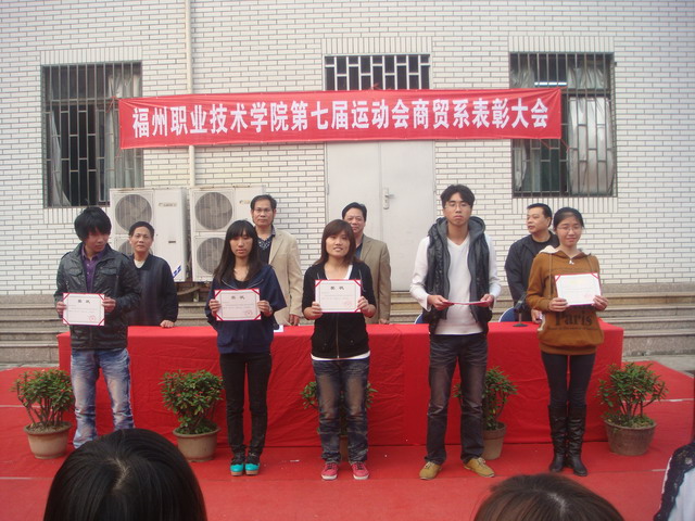 2011年11月23日下午,商贸系在仓山校区排球场举行第七届运动会表彰大会。商贸系党总支陈宝龙副书记、段维龙副主任、陆芳副主任、郭伟副书记、支委金昌耀老师出席本次表彰大会。大会表彰了在院第七届运动会上表现突出的商贸系运动员,同时也对参加广播体操、后勤人员和辅导员老师们表示感谢。