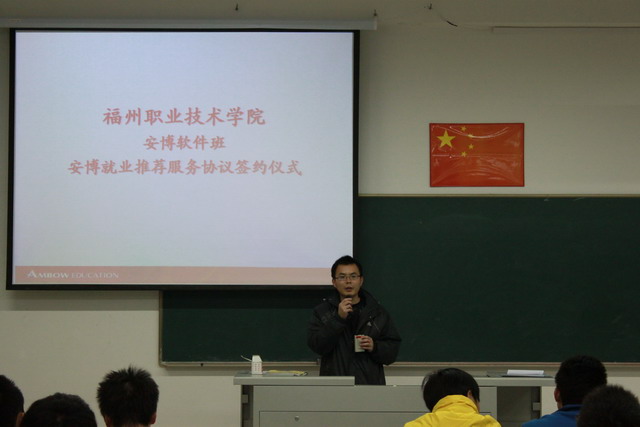2011年12月22日下午,计算机系与安博公司在1号教学楼309教室举行校企合作办学就业服务协议签约活动,会议由系辅导员郑容坤老师主持,出席会议的有企业代表黄文平经理和相关工作人员,2011级软件专业1、2班和软件数字媒体班同学。