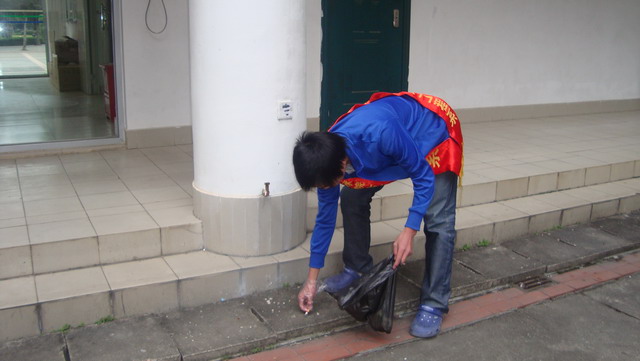 从2011年12月19日—2011年12月25日,各系分别组织了学生党员、入党积极分子、青年志愿者在学院开展清除校园广告、卫生死角、维护校园绿化等爱护环境的活动,引导学生尊重他人劳动成果,倡导同学间互帮互助、互学互爱、爱护公物、节约能源等良好习惯,共同营造文明、绿色、健康、和谐的校园环境。