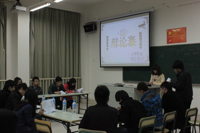 踏着青春的脚步,计算机系以“辩理乾坤内,敢问谁为智者”为主题的大学生辩论赛顺利进入了总决赛。