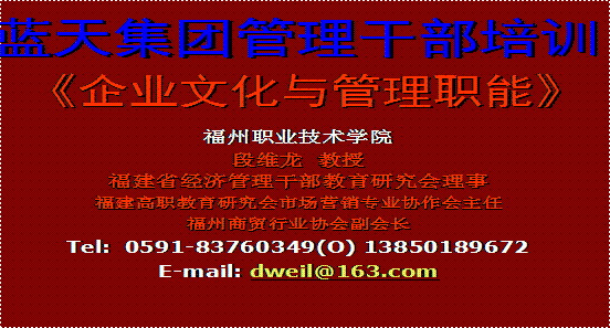 2012年2月10日下午,商贸系应蓝天集团要求,安排段维龙教授前往蓝天集团开展干部《企业文化与管理职能》培训,该集团包括董事长、总经理在内的38名中高层管理干部参加了此次两个多小时的培训。