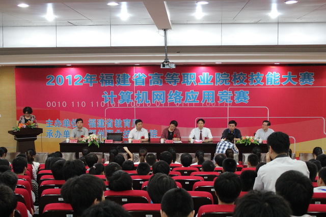 福州职业技术学院高度重视本次所承办的2012年福建省高等职业院校计算机网络应用技能竞赛,教务处、党政办、党群处、总务处、学生处、保卫科、计算机系等各部门紧密配合,精心筹备,周密安排,确保竞赛项目顺利进行,同时尽最大努力为参赛选手与各院校工作人员提供热情周到的赛会服务。