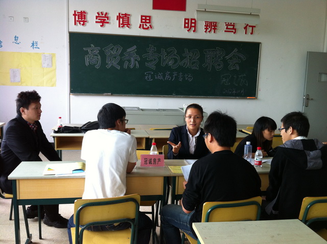 为了进一步扩展就业渠道,做好毕业生推荐就业服务工作,2012年11月2日下午,商贸系在2号教学楼509多媒体教室举办了专场招聘会,参与招聘的用人单位有麦田房产有限公司、中国太平洋保险有限公司、冠诚房产有限公司三家企业。