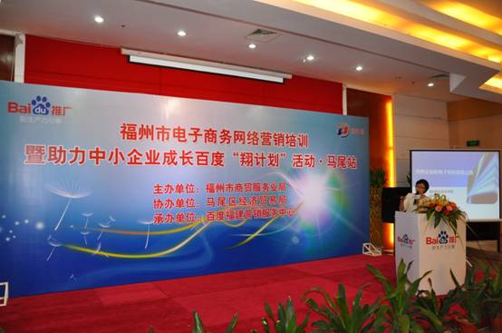 为落实福州市人民政府与百度公司签订的战略合作协议,推动福州市中小企业信息化建设和市场开拓,普及电子商务应用,近日,由福州市商贸服务业局主办、各县(市)区经济贸易局协办、百度福建营销服务中心承办的“福州市电子商务网络营销培训暨助力中小企业成长百度‘翔计划’活动”在福清、闽侯、马尾等地举行。来自我市各行各业的共计200多家中小企业600多名代表参加了主题活动。