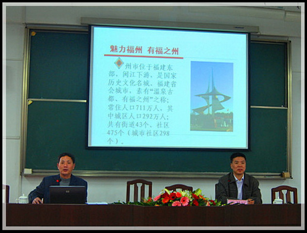交流报告会上,福州市社区大学校务委员会副主任委员、福州职业技术学院副院长、福州广播电视大学常务副校长金昌余作了《发展社区教育,助推学习型城市建设——福州市社区大学开展社区教育的实践与探索》工作经验交流汇报,分四部分:一、构建平台,搭建载体;二、突出主题,丰富内涵;三、完善设施,充实资源;四、回顾既往,展望明天。金副院长讲话中阐述了,自2003年5月和2004年9月依托福州职业技术学院分别成立鼓楼区社区学院、台江区社区学院以及于2010年11月成立福州市社区大学以来,在福州市委、市政府领导下,学院党政领导班子高度重视社区大学工作,大力发展社区教育,构建终身教育体系,服务区域经济,助推福州学习型城市建设,开展了一系列丰富多彩,富有特色的社区教育、终身教育活动,取得的良好的成效,多次受到市委、市政府及上级有关部门的肯定。与会同志还认真观看福州市社区大学开展社区教育的PPT演示,对我们的做法和经验,纷纷表示认同和赞许。