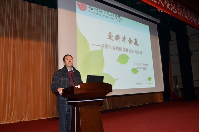 12月19日下午,在学院500人大礼堂召开职业技能大赛优秀指导教师和选手总结及经验交流会,会议由教务处欧阳少鸣处长主持,学院詹碧卿副院长、各系部党政负责人和师生代表参加了大会。