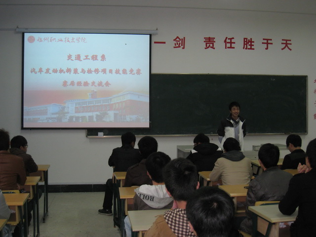 2012年12月12日下午,交通工程系全体教师以及参与技能大赛的学生们在实训楼408教室开展了“汽车检测与维修”技能大赛总结与经验交流大会。