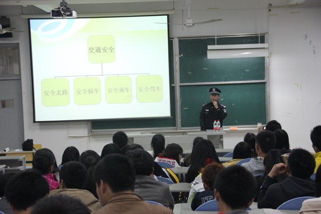 为加大学生安全教育力度,加强安全意识,落实安全措施,做到警钟长鸣,2012年12月13日晚,经济系邀请福州市公安局上街分局的叶学胜警官为学生开展一场安全教育讲座。此次讲座设在二号教学楼的322教室,经济系各班班委和宿舍舍长参加,梅萍老师主持该场讲座。