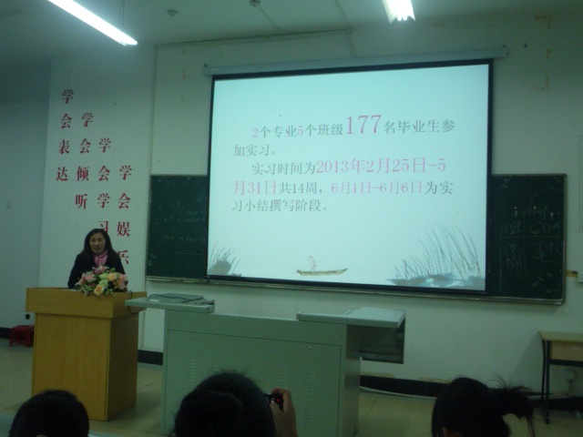 2013年1月5日,应用外语系在综合楼211多媒体教室举行了2013届毕业生实习动员大会,参加大会的有系党政领导、专业教研室主任、毕业班辅导员及2013届全体毕业生等。