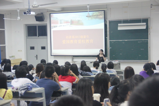 国庆节前夕,为进一步加强大学生理想信念教育、爱国主义教育、激发爱校热情,经济系召开了新生教育讲座,讲座由系党总支书记郭丽霞同志主讲。