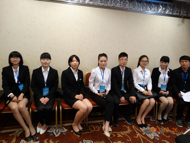 2013年10月26日,受福建省贸促会的邀请,应用外语系12名商务英语专业学生在苏文霞老师带领下承担了由中国国际贸易促进委员会主办的中国(福建)国际创意设计对接会翻译志愿者工作,受到组委会和外宾的一致好评。