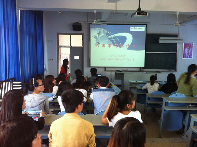 为构建毕业生与用人单位的交流平台,积极拓宽实习渠道。2013年11月3日下午,校企合作企业福建百纳在线网络技术有限公司到商贸系举办就业指导讲座和专场招聘会,2011级市场营销和电子商务的毕业班100多人参加了大会。