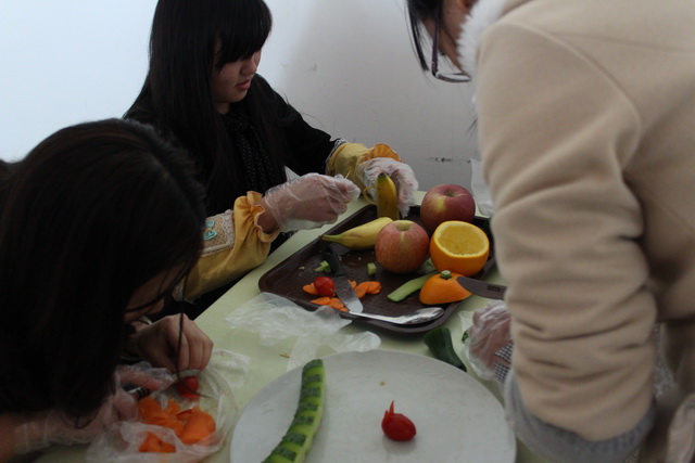 2013年12月4日下午,由院学生处、团委主办的第六届宿舍文化艺术节的活动之“疯狂的水果 愉快的创作”水果拼盘大赛在一期食堂二楼展开,广大学生积极踊跃报名参与。