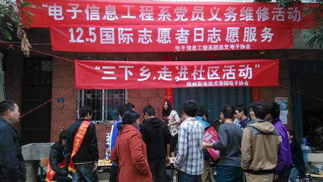 12月5日是国际志愿者日,由电子信息工程系团总支、电子协会共同承办的“12.5国际志愿者日志愿服务”活动在榕桥村举行,志愿者、电子协会成员参加了此次活动。