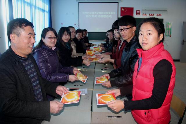 座谈会上,教师党员与结对的毕业生交换了“师生联系卡”,联系卡上不仅有师生各自的联系方式,还有祝福的语言。教师党员们主动了解“双困生”家庭基本情况、择业意向与要求、求职中的实际困难,不仅从精神上给予鼓励,并有针对性地帮助解决实际困难。最后,党员老师给结对的“双困生”送上了暖水袋,在寒冷的冬天带给学生一份最贴近心窝的温暖。