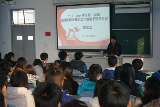 为营造良好的诚信迎考之风,做好期末安全教育。近日,商贸系期末安全教育暨温书迎考大会在2号教学楼509阶梯教室召开,系党总支陈宝龙副书记、辅导员及学生干部参加了此次大会,大会由苏东发老师主持。