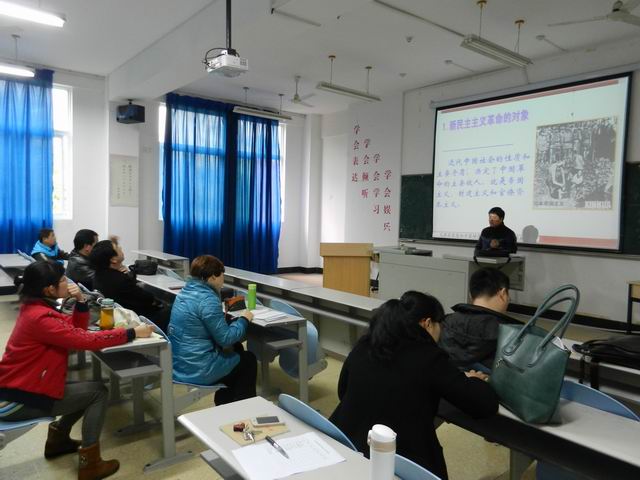 林秉智老师针对其所负责的《新民主主义革命和社会主义改造》教学模块,就该模块在《概论》课程体系中的地位、作用,教学目的、教学手段、教学内容的设计,以及在授课过程可能出现的问题、所采用的教学视频资料、教学方式方法等进行了阐述和分析。其他教师也就各自在备课及教学过程中出现的教学重点与难点提出意见和看法。与会教师各抒己见,整个交流活动气氛热烈、内容丰富。