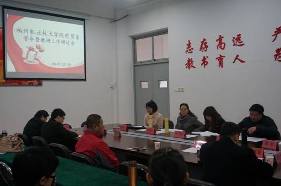 2014年3月7日中午,为了总结商贸系督导工作开展一年以来的情况,商贸系在2号楼513会议室召开“商贸系督导暨教研工作研讨会”,院督导室杨震主任带领院督导室成员参加了此次会议。会议由商贸系督导组组长秦勇副教授主持。