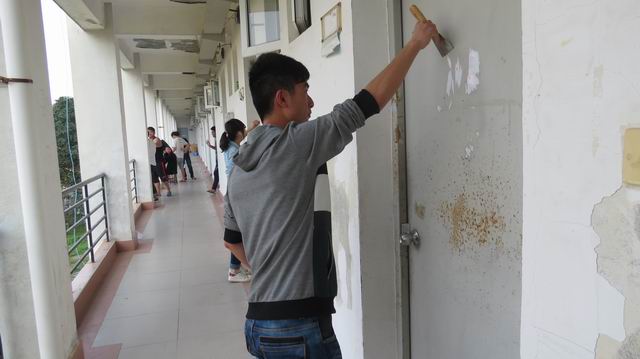 当天下午,计算机系党员、入党积极分子组成四个小组,纷纷走进学生公寓,用铲子,木刷,铁刷,洗洁精等工具,分别对学生宿舍楼层的“牛皮廯”进行了认真清理。在活动中,大家干劲十足,不嫌累,不怕脏,任劳任怨,为学院同学们创造了优美的生活和学习环境。
