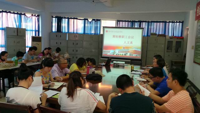 人文系于2014年9月2日在综合楼315会议室召开期初教育教学工作会议,全面部署新学期工作,全系专、兼职教师参加了会议。会议由系党总支书记贾同恩同志主持。