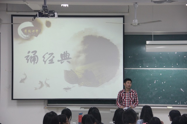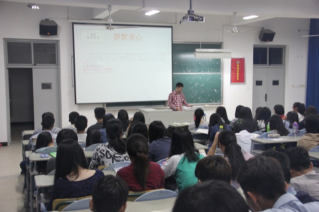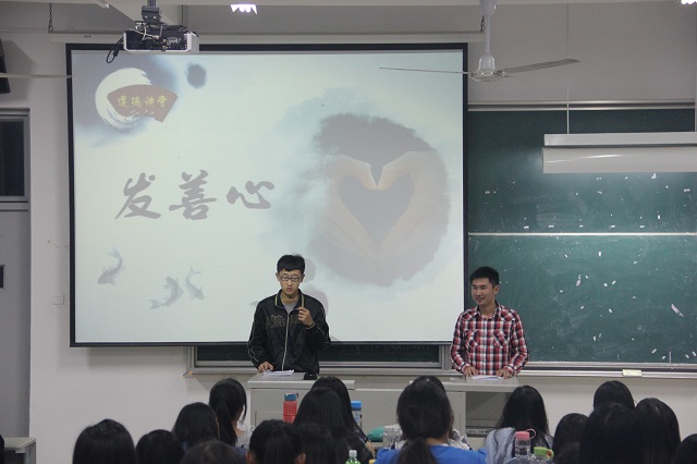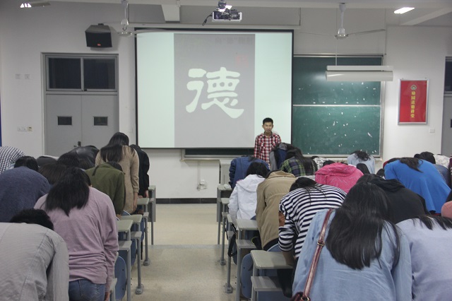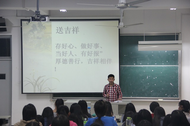 为深入贯彻党的十八大精神,扎实推进社会主义核心价值体系建设,提升学生思想道德素质。2014年10月29日晚,学院财经系开展了由辅导员许坤金老师主持的“励园道德讲堂”活动。