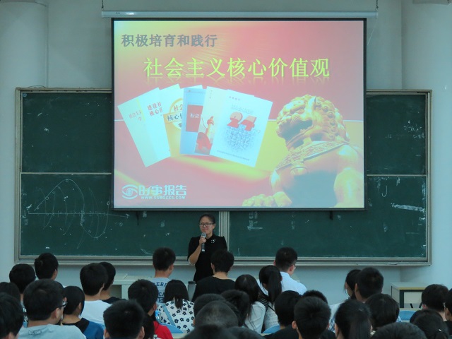 肖水清老师接着开展社会主义核心价值观教育。希望学生干部能不断加强对社会主义核心价值体系的学习,用社会主义价值观来引领我们的思想,不断形成精神共识。