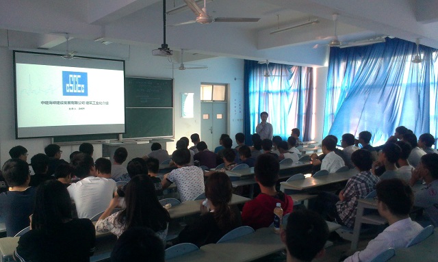 专家涂闽杰先生为同学们介绍了建筑工业化的概念、发展历程,及中建海峡建设发展有限公司的建筑工业化研究项目进展情况,表达了与学院建筑专业合作培养建筑工业化人才的意向。