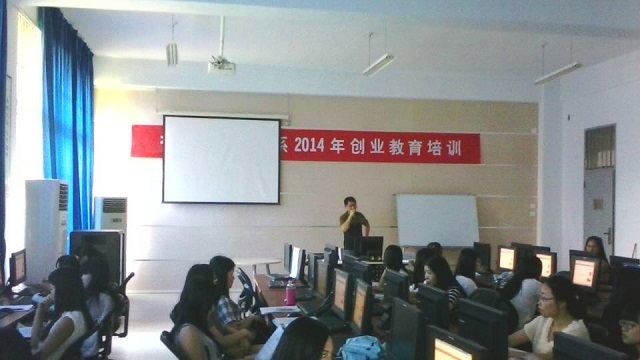 为了培育大学生的创业意识,增强大学生的创业知识,提升大学生创业应具备的基本创业技能。2014年11月15日,财经系在2号教学楼215教室进行创业培训班开班授课,对有创业意愿的2015届毕业生进行创业培训。