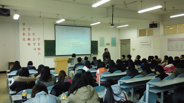 为了帮助学生选择适合自己的就业岗位,树立职业发展思想,2014年12月17日,应用外语系邀请福州跨境电子商务协会副会长、福州成凯宠物用品公司总经理、阿里巴巴讲师杨锦燕在实验楼211多媒体教室开展了以“摆正就业心态,树立职业发展思想”为主题的就业指导讲座,应用外语系学生聆听了讲座。
