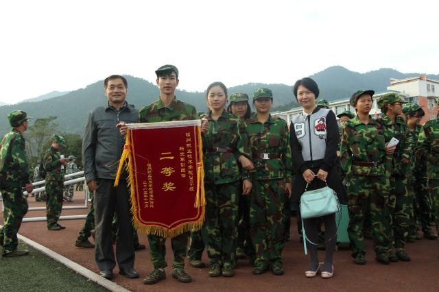 军训期间,在教官的悉心指导下,同学们一遍又一遍地练习着军姿的站立、军步的走法、正步的踢法,整齐有力的动作和井然有序的训练方式,不仅表现出了严格的组织纪律性,还精彩地展现了2015级同学们强烈的集体荣誉感。在艰苦的训练场地上,辅导员和新生助导以及学生干部的身影时常出现,为同学们送来暖暖的问候。在这么长的军训时间里,同学们经过不懈努力,终于在最后的阅兵式汇操中,凭借着方阵严整的军容,整齐的队列,刚健的步伐,响亮的口号,赢得了部队首长、教官和学院领导、老师的热烈掌声,用辛勤和汗水赢来了团体二等奖的荣誉。