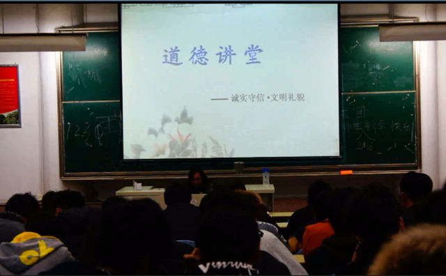 2016年1月4日,网络工程系2015级的全体学生在301教室举行以“诚实守信•文明礼貌”为主题的道德讲堂活动。