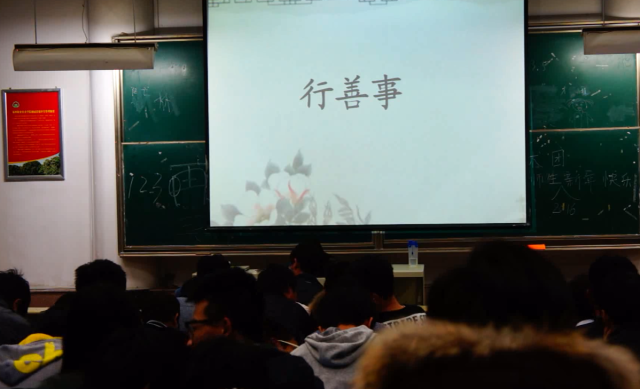 道德讲堂是弘扬道德、修身养性的场所。是一项重要的学生道德教育活动。此次道德讲堂有八个环节,分别是“自我反省、听一首歌曲、看短片、诵一段经典、讲一个故事、鞠躬礼、做善事、送吉祥”。主讲老师针对每一个环节都做了深入浅出的讲解。学生们精神饱满、热情互动。整堂课在温馨、和谐的氛围中进行。本次道德讲堂让学生品悟了道德力量,升华了自身境界,净化了学生心灵,能够让学生在以后的生活中做一个懂礼仪,讲诚信的有德之人。相信同学们能够正视自己的缺点、确立正确的、积极的、健康的人生观和价值观。为网络工程系的德育教育贡献一份力量。
