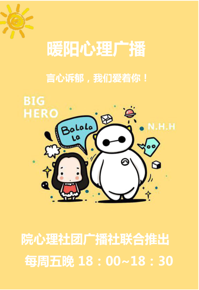 “荔园暖阳心理广播”是院阳光心理之家为学生开设的一档“心灵鸡汤”广播节目,每周五18:00-18:30,由荔园广播社进行播放。“荔园暖阳心理广播”口号是“言心诉郁,我们爱着你!”,旨在校园传播心理健康相关知识。这档节目由院阳光心理之家导师许坤金老师担任指导,院心理社团负责供稿,院心理社团与荔园广播社联合开展。“荔园暖阳心理广播”,通过分析大学生常见心理困惑,科普心理学常识,将知识和故事结合在一起,风趣易懂,解决心理困扰,全面提升学院学生心理素养。