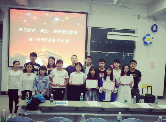 2016年10月13日,商贸系在2幢322教室举办了“学习党史、国史、讲好福州故事”演讲比赛,商贸系全体辅导员、2016级新生参与了本次比赛。