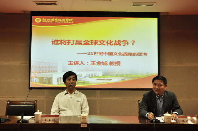 为浓厚学院学术研究氛围,进一步提升教师的科研意识与能力,同时,配合学院“大学生综合素质提升计划”的实施,2016年12月21日下午,学院产学研与实训中心特邀闽江学院中文系教授王金城做题为《谁将打赢全球文化战争——21世纪中国文化战略的思考》的专题讲座。讲座由廖诗忠主任主持,全院300多名专业技术人员与100多名学生代表参加了讲座。