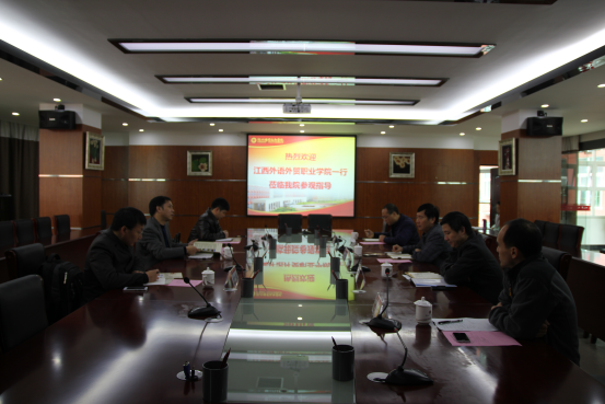 2017年3月15日上午,江西外语外贸职业学院党委委员、电子商务学院院长宋俊骥一行3人莅临学院考察学习。学院刘松林副院长、产学研与实训中心、网络工程系、电子信息工程系主要负责人热情接待了来宾。